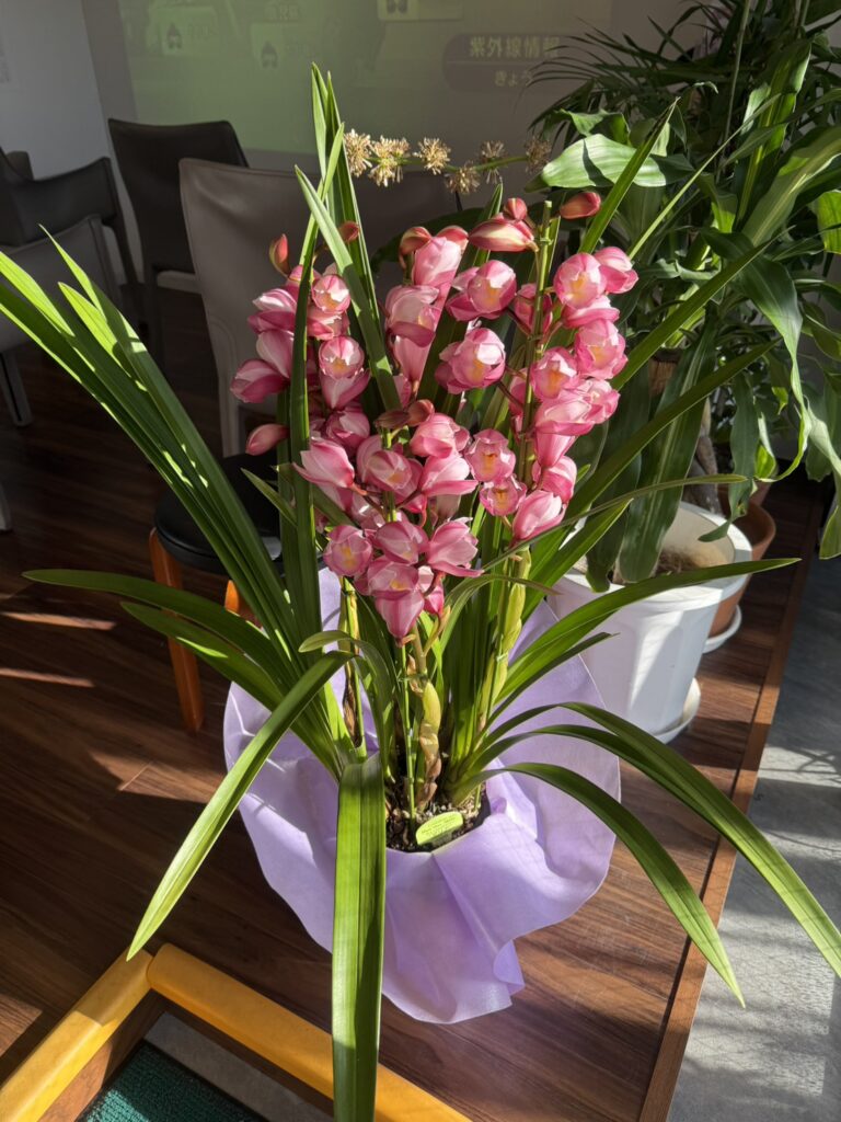 シンビジウムの花言葉は、「飾らない心」「誠実な愛情」「高貴な美人」「素朴」などがあるようです。
